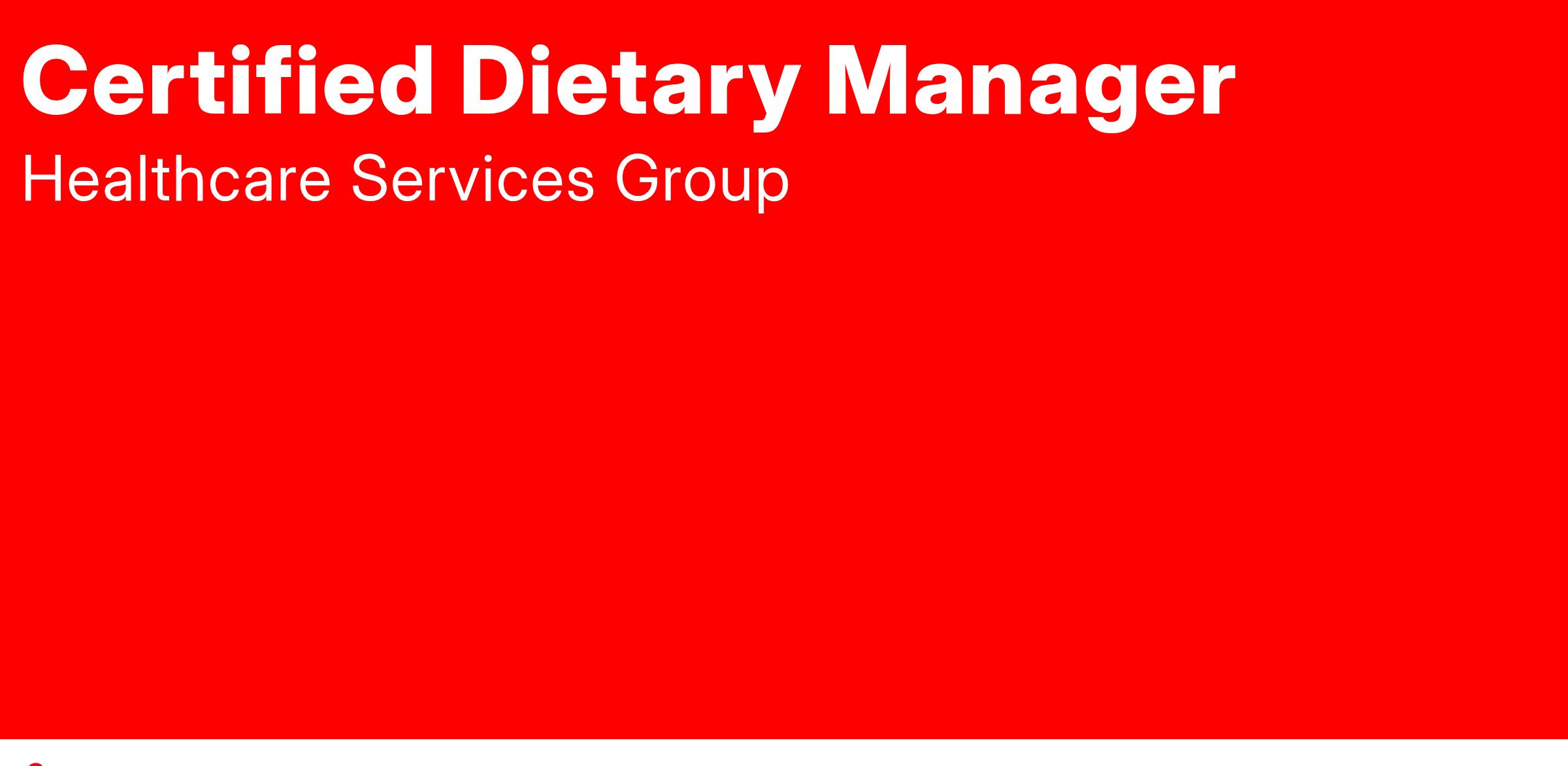 - Certified Dietary Manager (CDM) certification required.