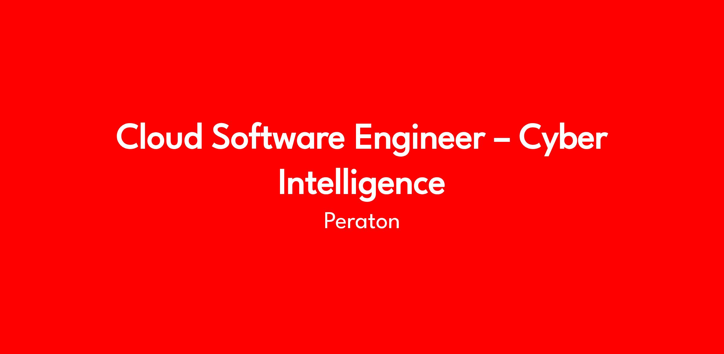 Cloud Software Engineer – Cyber Intelligence | Laurel, MD