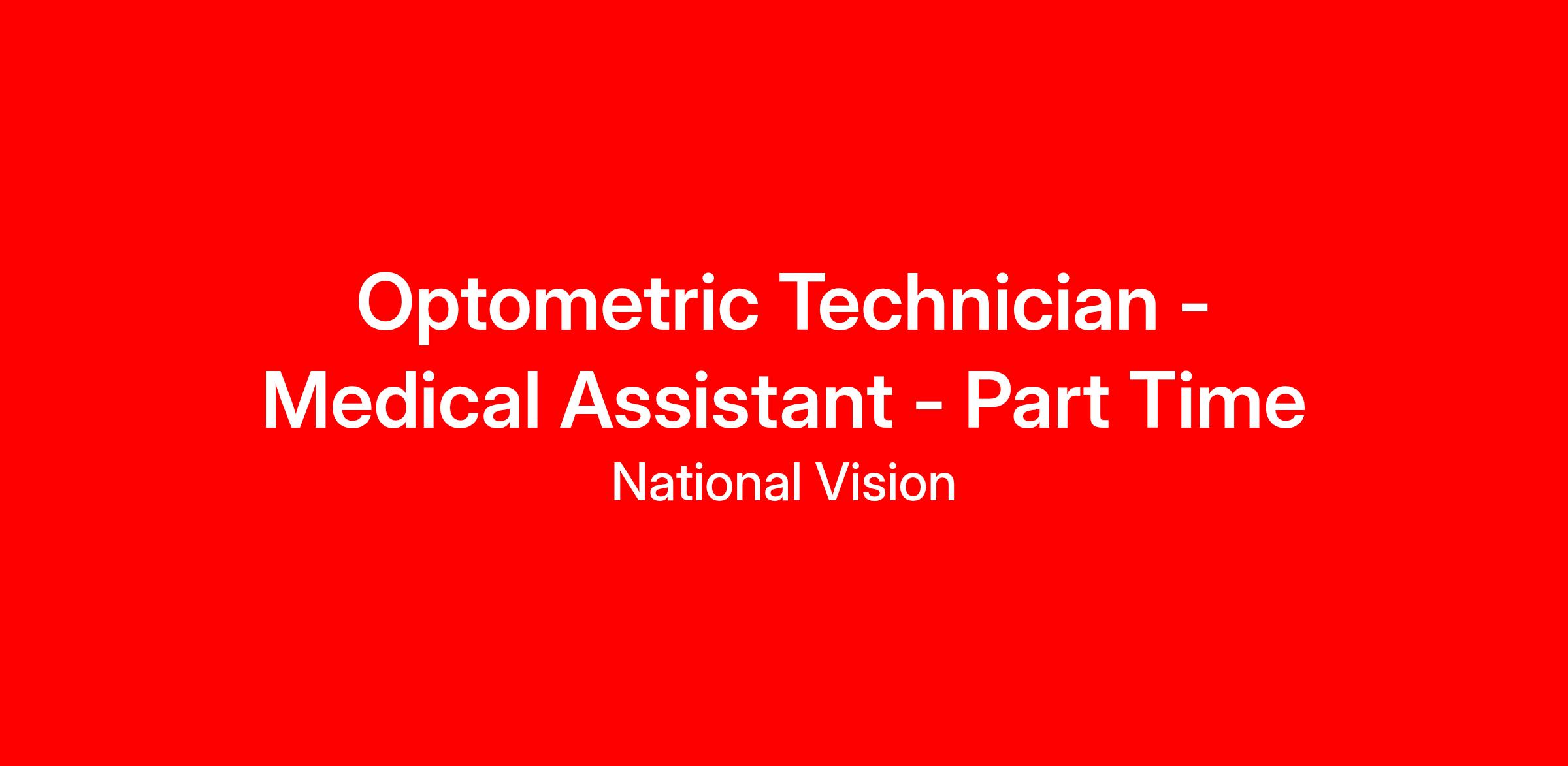 Optometric Technician - Medical Assistant - Part Time