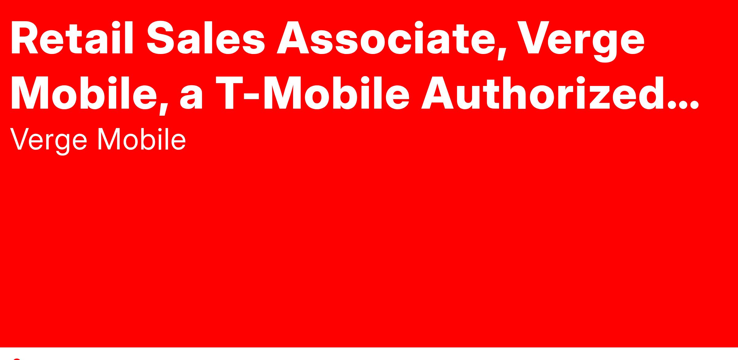 Do you thrive in a fast-paced, team-driven environment where your contributions make a real impact? Verge Mobile, a T-Mobile Authorized Retailer, is seeking motivated and customer-focused Retail Sales Associates to join our growing, high-performing team!