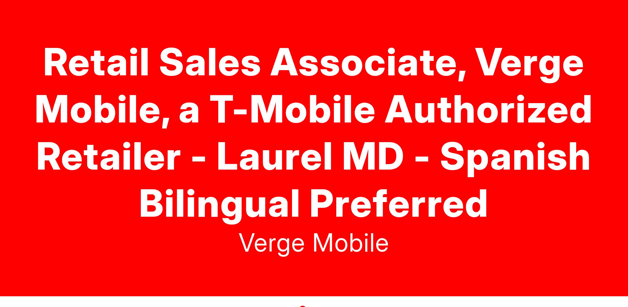 Retail Sales Associate – Verge Mobile, a T-Mobile Authorized Wireless Retailer